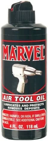 I have always used Marvel Air tool oil and have never been disappointed. It works great. You don’t need much so this size is very nice to keep with the tool.