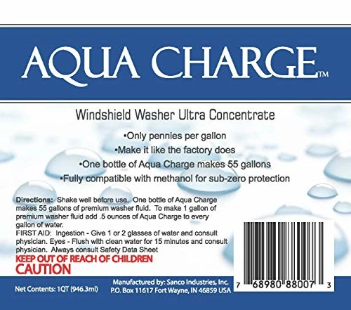- Will freeze at 32°F, add 13 gallons of Methanol per 55 gallons of Aqua Charge for -20°F freezing point