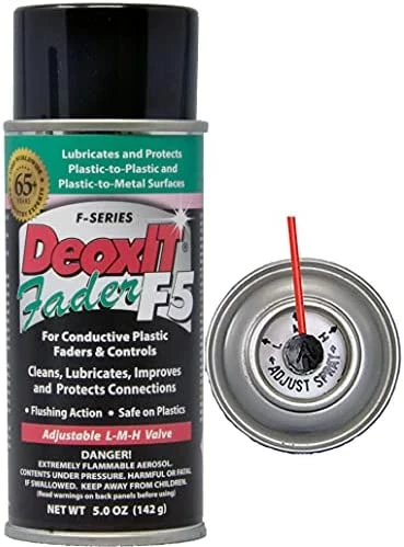 This product works miracles, it resurrected my 1978 Technical SA-500 amplifier which was having serious right/left channel cutoffs on the volume knob. I had previously used D5 to some success on the volume potentiometer, but that product should only be used for static switches. Use the red D5 on all switches, and this product F5 on all moving potentiometer knobs, as it has lubricant in addition to a lower concentration of deoxidizing solution.Make sure you open up unit for access, then spray F5 directly on all potentiometers with the straw, then spin each back and forth completely many times.Lubricating the potentiometers does give them a slightly looser feel adjusting, but nothing detrimental for the vast audio improvements.All channel cutoffs and static when adjusting has been eliminated, and amazingly on the high volume end, my amp now goes much louder. This is already an overpowered 500W amp, but I was amazed that max volume has seemingly doubled.