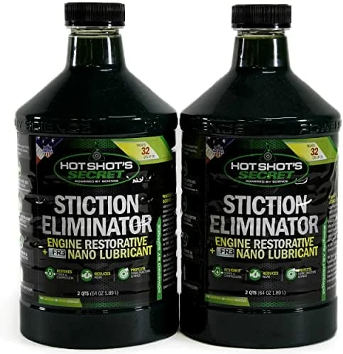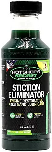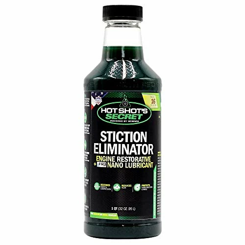 Hot Shot’s Secret Stiction Eliminator is an engine oil treatment and oil stabilizer engineered to remove the sludge and varnish created from burnt oil from inside your engine while also lubricating to protect engine components. Stiction is the term for the sticky friction caused by the deposits that form inside your engine over time. This stiction results in lost power and compression, lower fuel economy and leads to excessive wear inside the engine. Stiction Eliminator is a unique blend of synthetic cleaner and a proprietary carbon nano lubricant that removes harmful stiction and lubricates components inside your engine, including turbocharger, rings, oil pump, pistons, HEUI injectors and more. It is scientifically proven to remove stiction in 100% of engines, reduce engine wear up to 62%, improve power and compression, and increase fuel economy. Stiction Eliminator is a unique blend of synthetic cleaner and a proprietary carbon nano lubricant that cleans stiction while reducing the coefficient of friction. Use in any gasoline or diesel engine to increase fuel economy, reduce wear and dissolve power robbing stiction (sludge). It is perfect as a diesel additive in diesel oil, or gasoline additive for regular engine oil. Use In All Engines: Semi-trucks, pick-up trucks, farm equipment & autos. Effective in all engines including: Ford Powerstroke, Dodge Cummins, GM Duramax, Saab, Volkswagen, Audi.