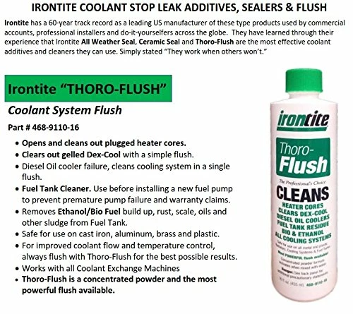 I had radiator leak and did the typical novice thing and added stop leak which didn’t fix the leak but clogged my heater core I had no heat and I was looking at $1500 to replace heater core. I prayed for 1st time in my life lol. Please o please let irontite fix my clogged heatercore and it did. Praying didn’t fix it but irontite sure did. So happy. I recommend this product.