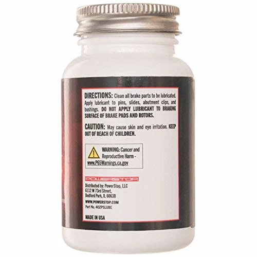 Making PowerStop Silicone and Ceramic Brake Lube a part of your maintenance will extend the life of your brakes! Using lube on your brake parts will help you avoid seizing, sticking, rust, corrosion, and uneven or premature brake wear. As an added bonus, proper lubrication of your brake system will reduce brake squeal. You can count on PowerStop’s Ceramic Brake Lube in the most crucial situations; our brake lube can withstand contact with water or salt as well as temperatures ranging from -50F to 1500F. This brake lube is easy for anyone to use and perfect for the do it yourself-ers out there. It’s compatible with rubber, plastic, and metal and includes an applicator attached to the inside of the cap. With this 4 oz. bottle, you can complete about 22 single-axle brake jobs, or 10 full-vehicle brake jobs. This lube is made to enhance the performance of your brakes, and it also works great for parts on motorcycles, boats, or any mechanical system exposed to the elements! Application is easy, clean all parts you plan to use it on, then apply!