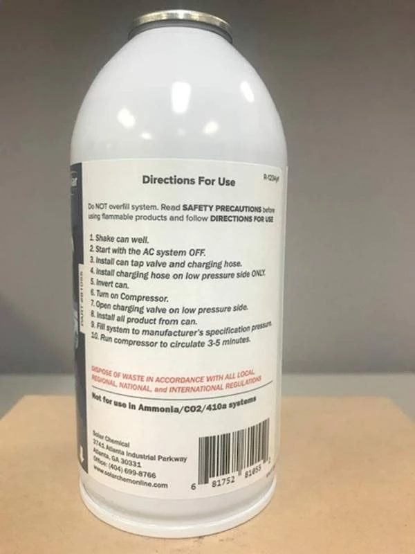 Solar Chemical Arctic Air for R-1234YF Refrigerant 3oz can. Improves A/C Performance Removes Moisture to Prevent Corrosion Extends A/C Working Life Compatible Mineral/Ester/PAG Oils. Disclaimer: May need Adapter and Cap taps, depending on your current Refrigerant Kit Gauge Set.