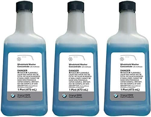 If you own a BMW, you need to buy this windshield washer concentrate. This is the best price I could find it at and you CANNOT use the other brands or generic washer fluid. Why? Because the reservoir is located in the panel behind the front passenger wheel. The lack of exposure to light and/or normal engine compartment operating temperatures will allow algae/ mildew to grow which will plug up your windshield washer pump’s filter (ask me how I know :/) This product has an anti-fungal or some such in it.The good news is, if that has happened to you (pump no longer pumpy) and you are marginally handy – as opposed to fully handy, you can remove the tire, remove the plasticized fiberboard wheel well cover, unscrew a couple of bolts, slide the reservoir forward, pull the no pumpy pump off the bottom of the reservoir, clean the filter of the ectoplasm that has built-up, and it should work again. That 30 minutes of effort will save you $300-$500 at a shop where they will probably just replace the pump and tell you it is bad.All that said, buy this concentrate and mix it with a gallon jug of distilled water. Half a bottle of this concentrate (8oz) to one gallon of distilled water and your windshield wiper fluid is good to about 28 degrees Fahrenheit.